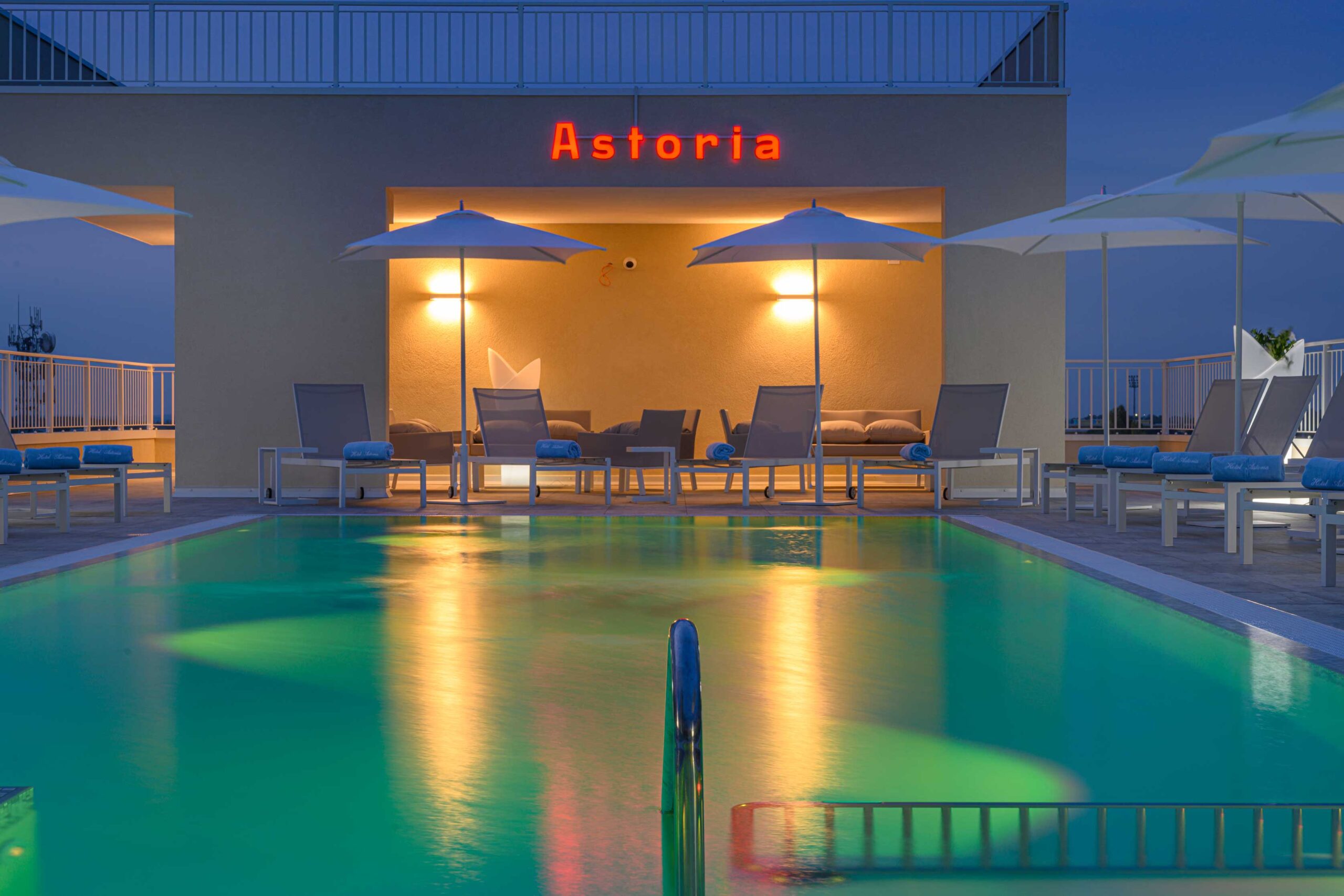 Se state cercando un hotel con piscina riscaldata a Bibione, l’Hotel Astoria è la scelta ideale. La nostra struttura offre il comfort di una favolosa piscina panoramica riscaldata, perfetta per rilassarsi in ogni momento della giornata. Il nostro è il Bibione hotel con piscina rooftop dove potrete gustare un buonissimi cocktail, godendo della vista mozzafiato.